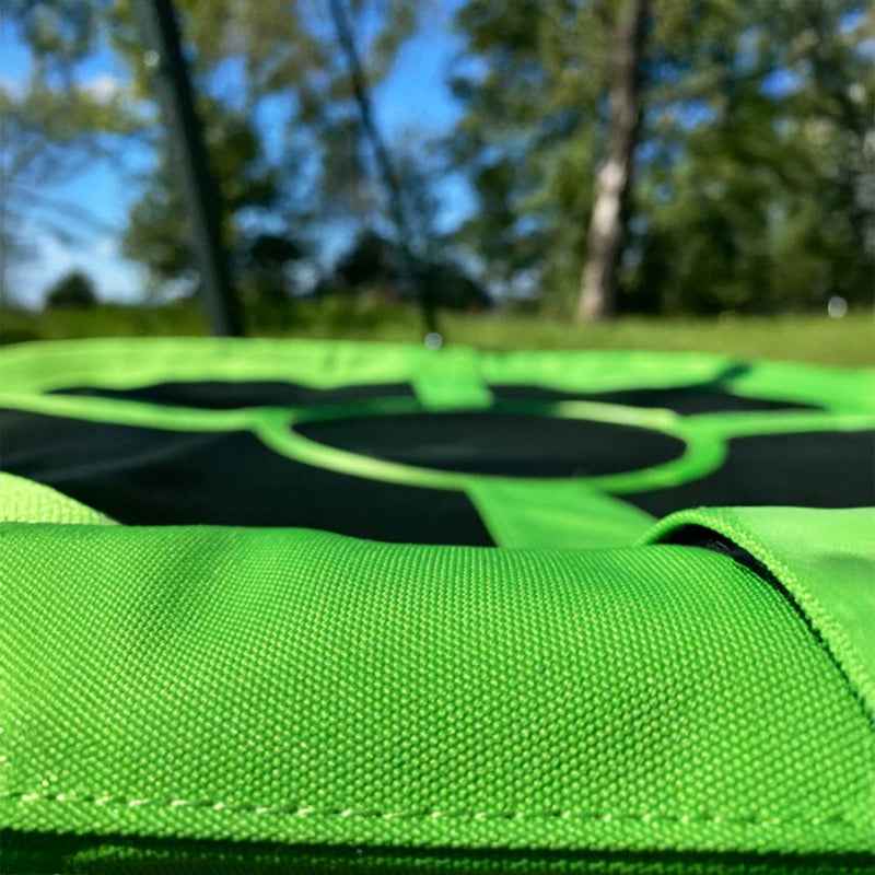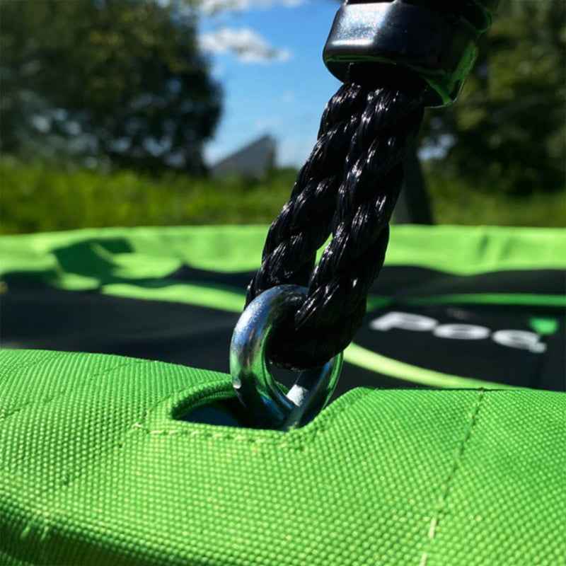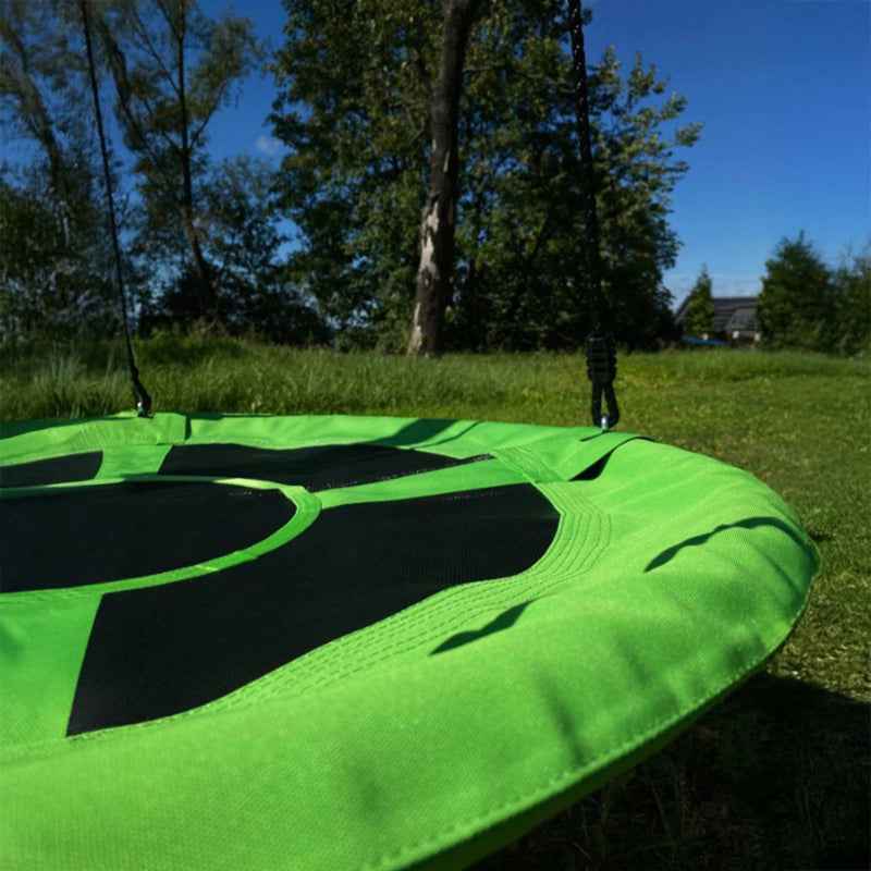 Le diamètre de 100 cm et les cordes ajustables (115–180 cm) permettent une adaptation parfaite à votre espace. Sa structure renforcée en acier et mousse offre stabilité et douceur à chaque utilisation.