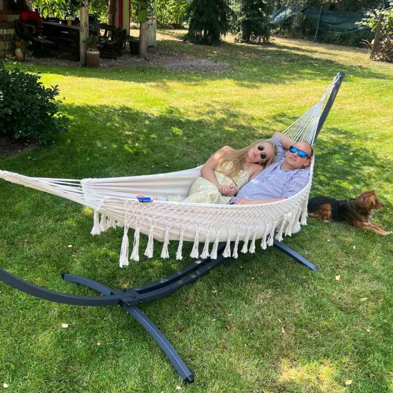 Explorez la perfection de la détente grâce à notre Hamac Deux Places sur Pied, un accessoire essentiel pour tout espace extérieur, combinant confort et élégance.