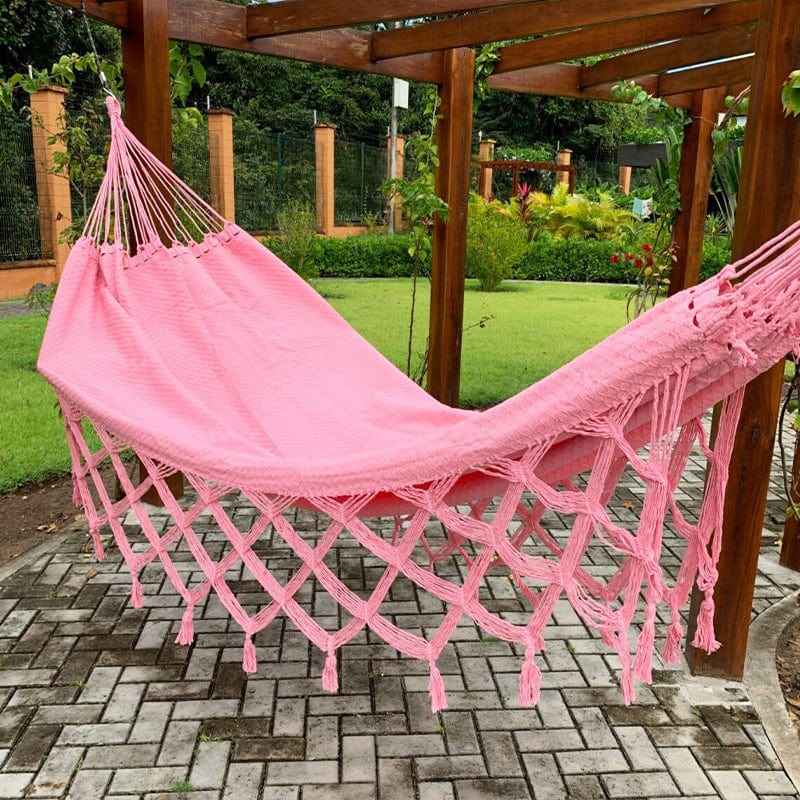 Hamac Corde Tressée en coton naturel, parfait pour la détente en couple, avec une finition durable et un style élégant pour tous les environnements.