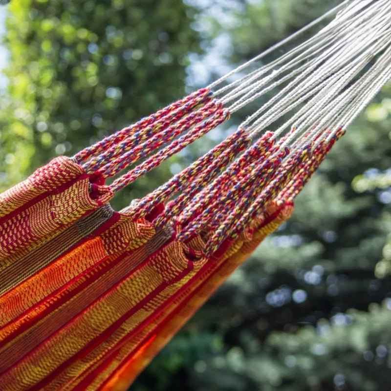 • Hamac en coton pur 320 mg/m2 : douceur et entretien facile.