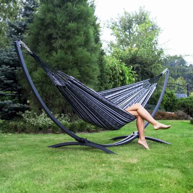 Avec ce hamac sur pied, capable de supporter jusqu'à 150 kg, profitez d'un havre de paix chez vous. Jamais la détente n'a été aussi simple.